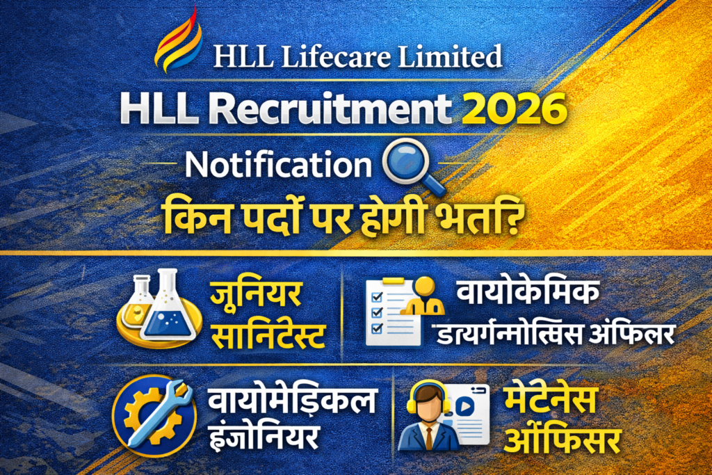 हेल्थ सेक्टर में सरकारी/पीएसयू नौकरी की तलाश कर रहे उम्मीदवारों के लिए अच्छी खबर है। HLL Recruitment 2026 के तहत अलग-अलग पदों पर भर्ती के लिए नोटिफिकेशन जारी हो चुका है। इस अभियान के जरिए 39 पदों पर नियुक्ति की जाएगी, जिसमें मैनेजर और असिस्टेंट मैनेजर सहित कई जिम्मेदार पद शामिल हैं।HLL Recruitment 2026 Notification: 39 Vacancies for Manager & Assistant Manager