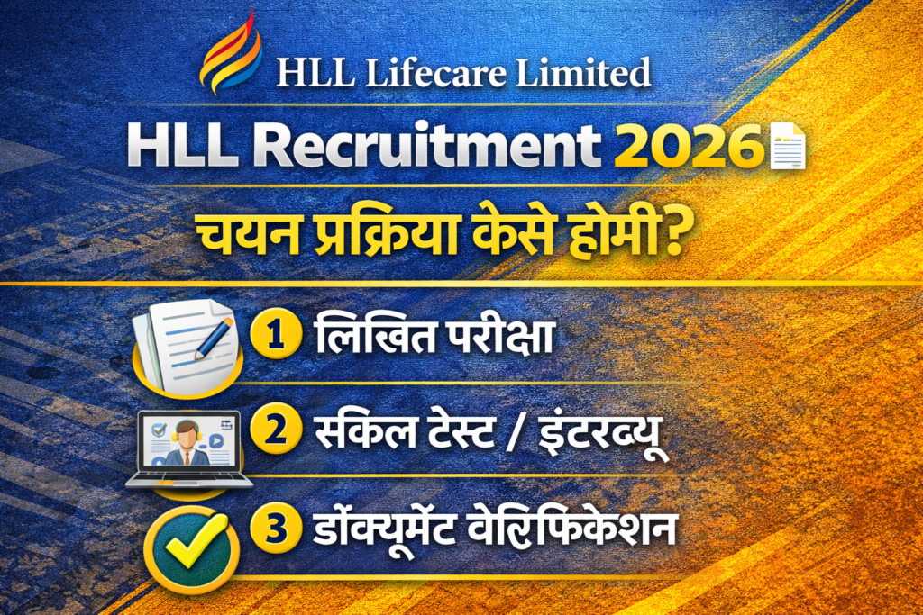 HLL Recruitment 2026 के अंतर्गत उम्मीदवारों का चयन शॉर्टलिस्टिंग और इंटरव्यू के माध्यम से किया जाएगा। इस भर्ती प्रक्रिया में कोई लिखित परीक्षा आयोजित नहीं की जाएगी।